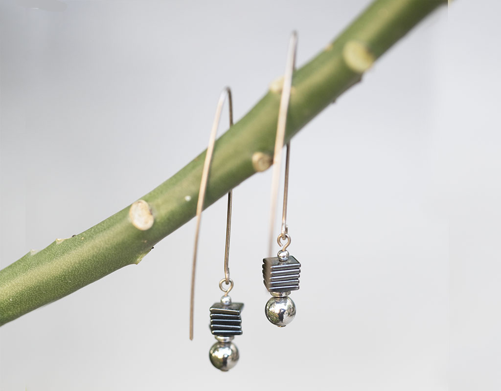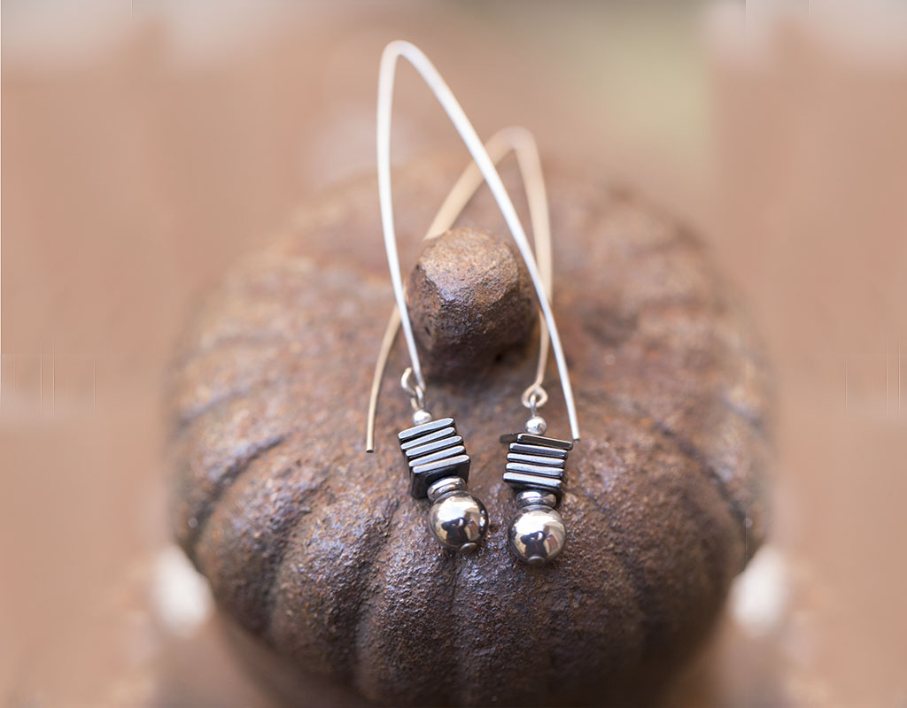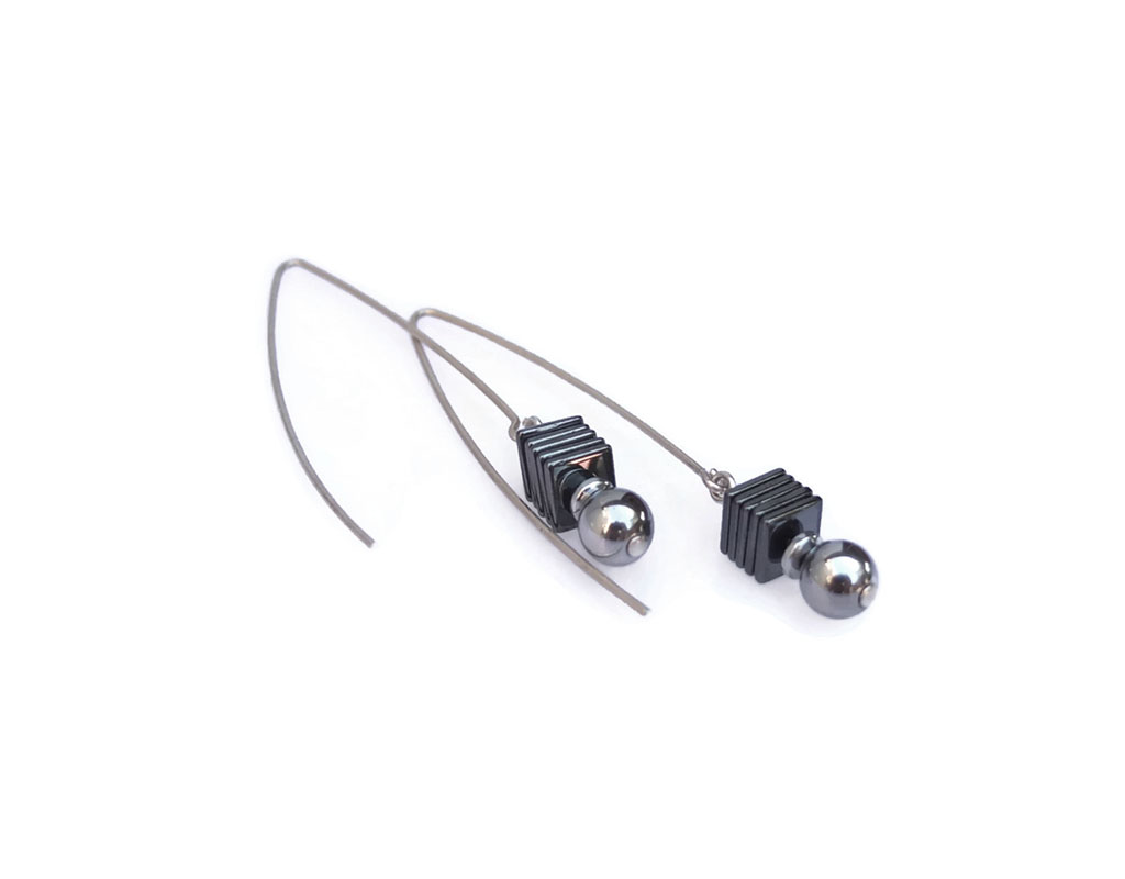Earrings made of hematite gemstone. Part of beads are titanium coated, so they are silverish-metallic. Part of them are in natural hematite dark gray color.