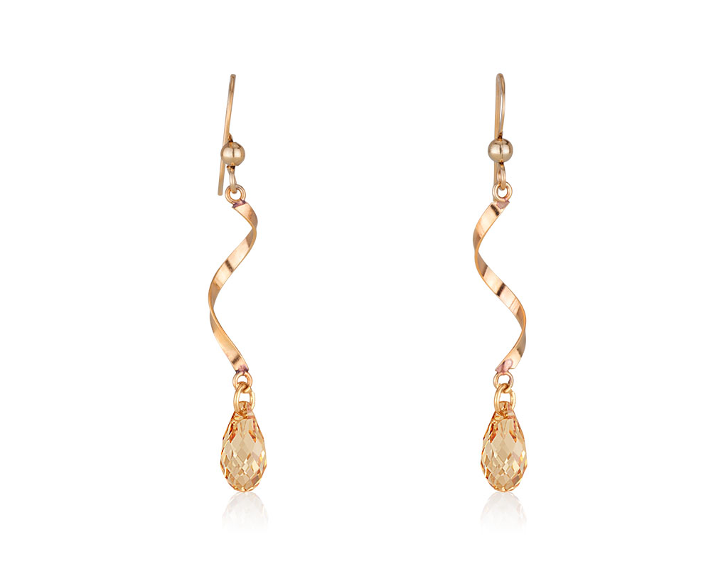 Long dangle earrings made of gold filled with Swarovski crystal drop. Length: 4,5